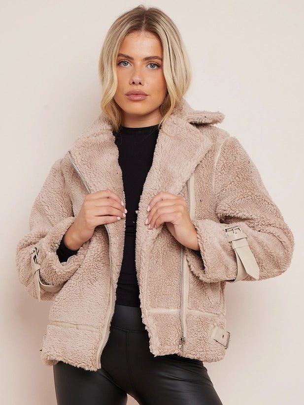 اظهر بمظهر أنيق مع سترة Borg Biker هذه. مصنوعة من أقمشة متينة، وتتميز هذه القطعة بسحابات معدنية قوية وخياطة معززة لقوة يمكن الاعتماد عليها. توفر البطانة الصوفية القابلة للإزالة المزيد من الدفء، بينما يضمن تصميمها خفيف الوزن الراحة طوال اليوم. تبدو رائعة في كل مكان بهذا التصميم الخالد.