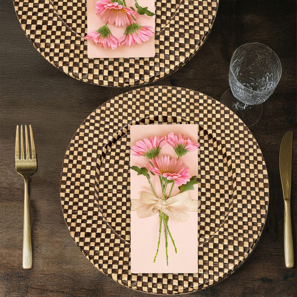 Set of Four 33cm Dia Pandanus Black and Natural Charger Plates