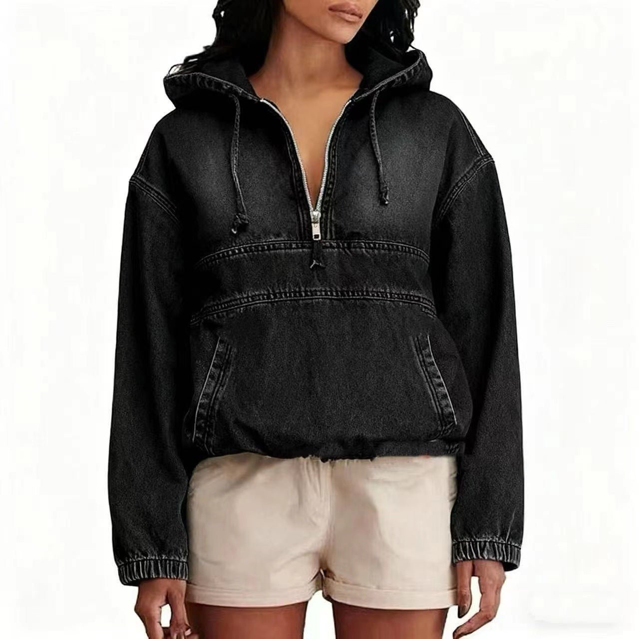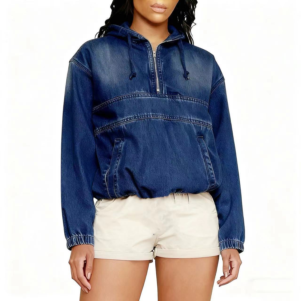 Elevate your casual wardrobe with this versatile hooded denim jacket. Featuring a comfortable long-sleeve pullover design, it combines classic denim durability with modern functionality. The attached hood adds extra protection and style, while the relaxed fit ensures all-day comfort. Available in three timeless shades—crisp light blue, deep navy, and classic black—this jacket pairs effortlessly with jeans, joggers, or chinos. Perfect for layering through seasons or wearing solo on mild days.