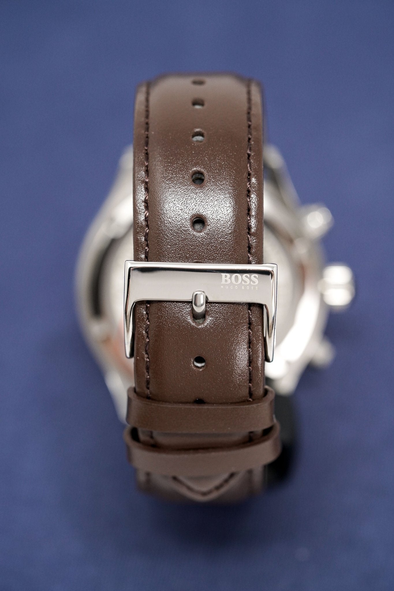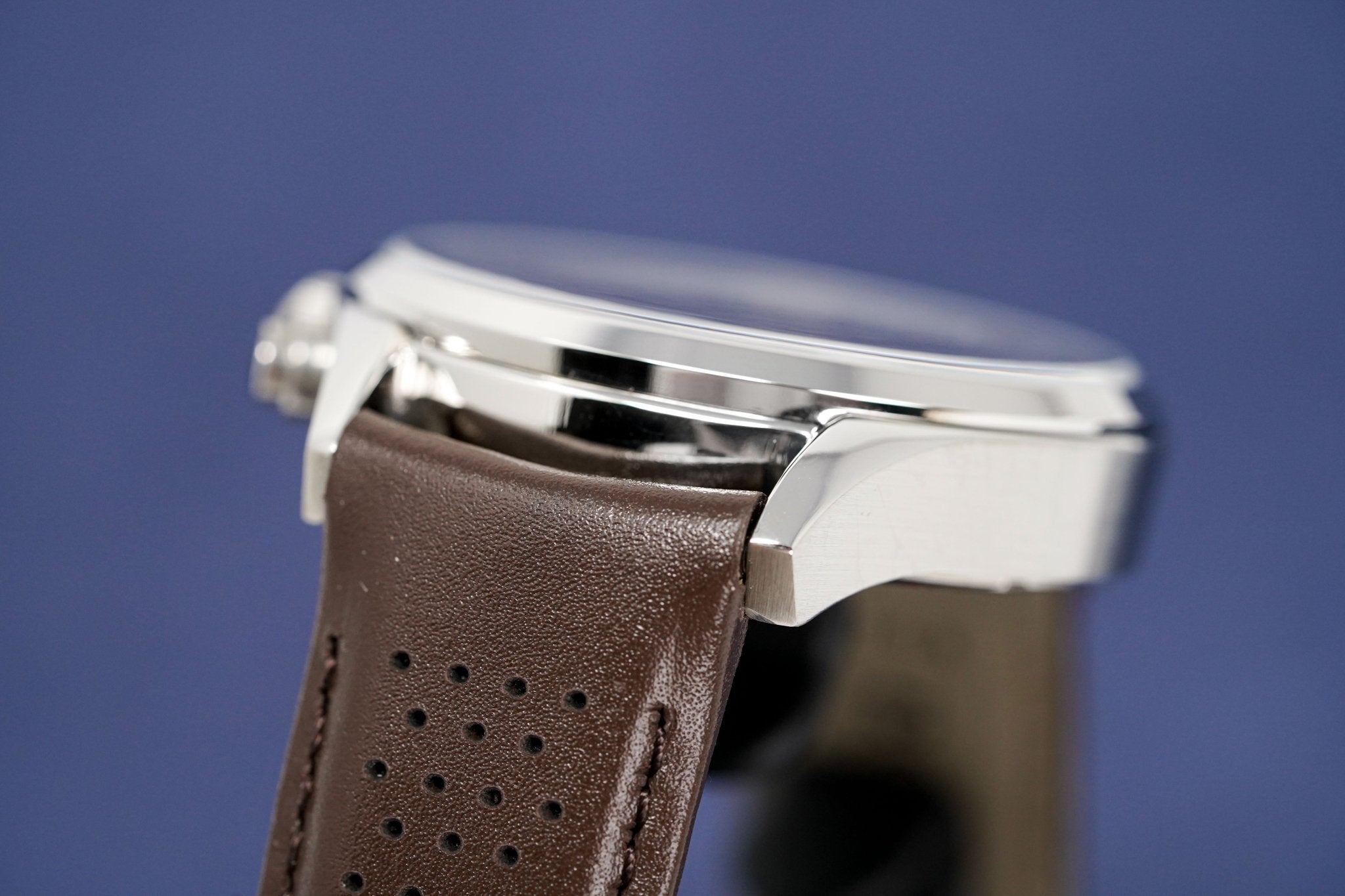 Brown Perforated Leather Strap with Stainless Steel Pin Buckle.