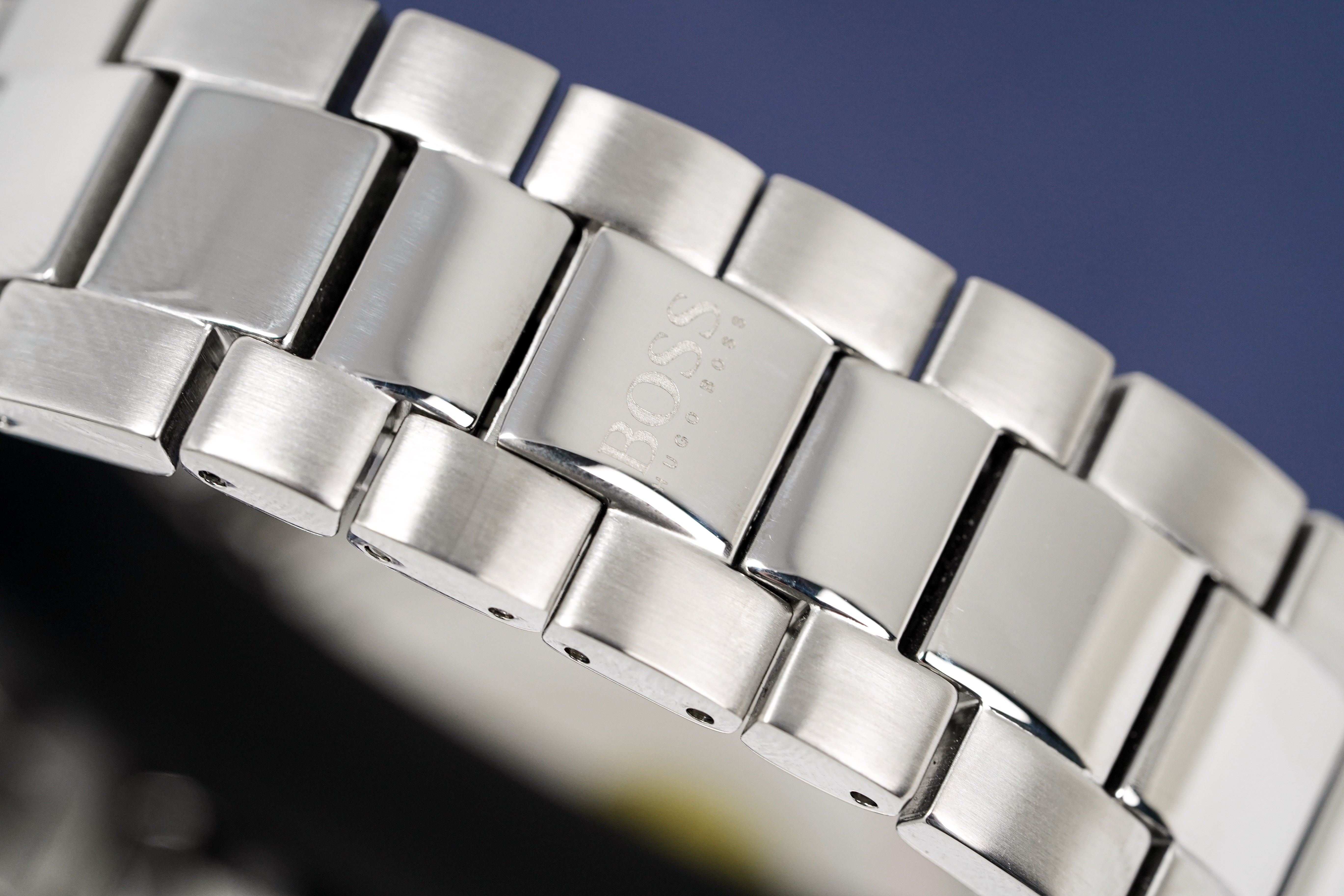 Stainless Steel Bracelet with Push Button Deployment Clasp.