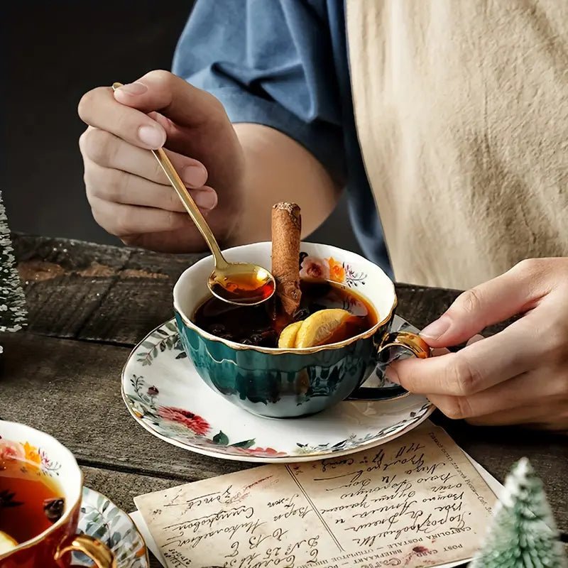 Indulge in the exquisite charm of our vintage ceramic coffee mug set, designed to elevate your tea and coffee experience. Crafted from high-grade bone china, this set includes a beautifully designed cup, saucer, and spoon, making it a perfect addition to your kitchen or a thoughtful gift for a loved one.