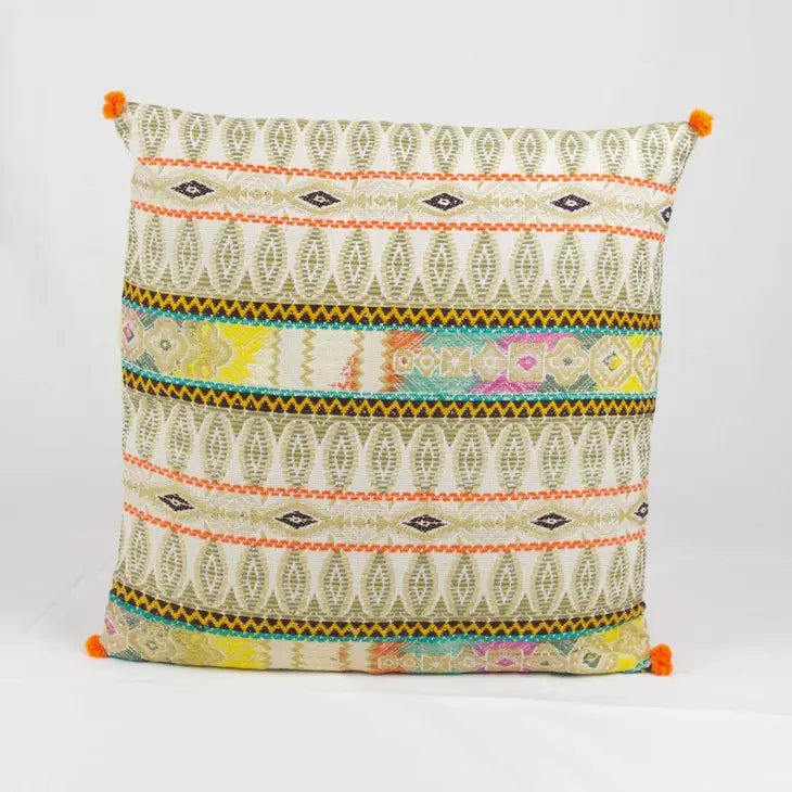 This bohemian cushion cover comes in a stunning multicolour threading pattern on the front and tassels at each end. Material: cotton & wool threads.