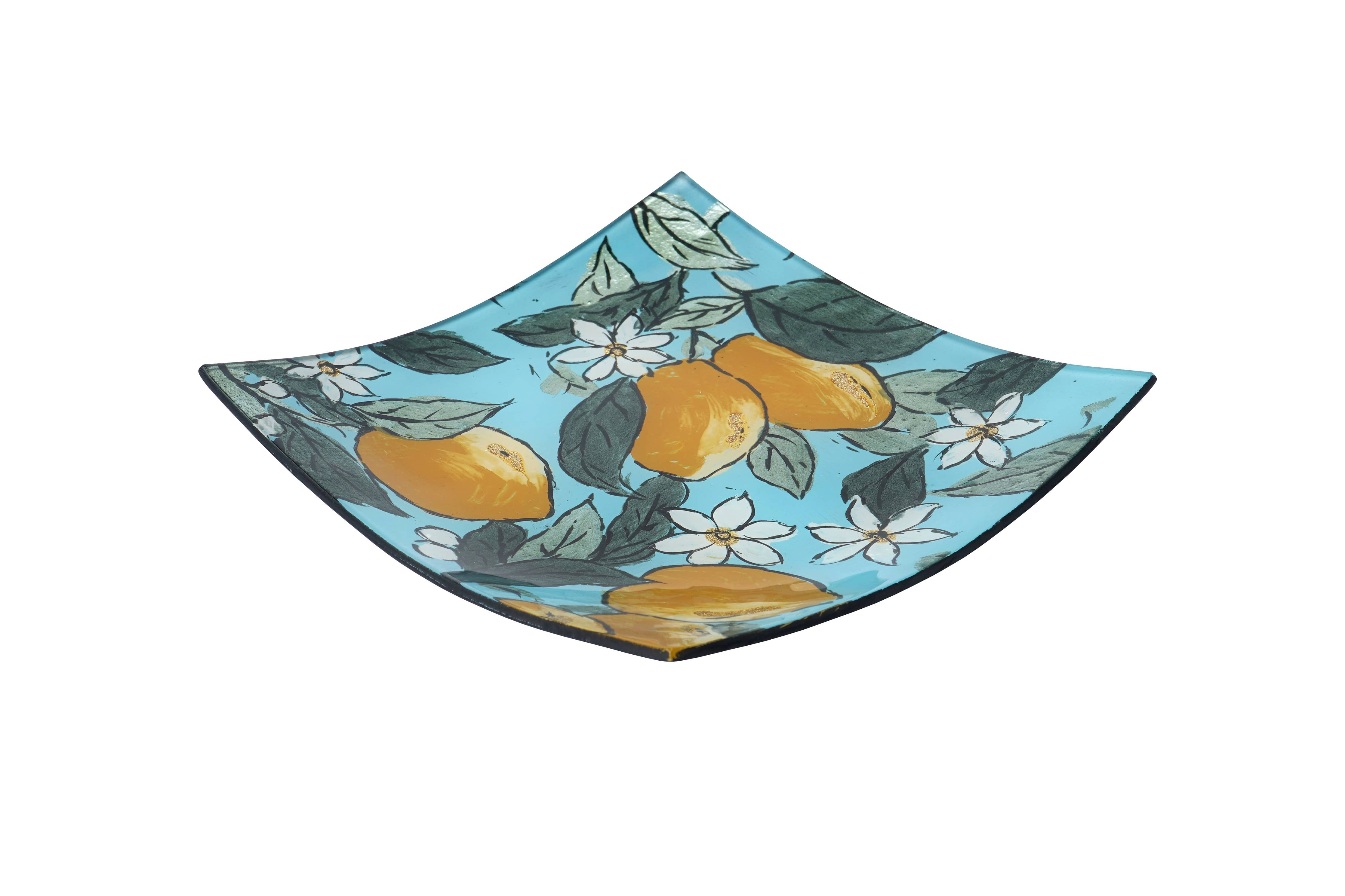 A Beautiful Way to Decorate Your Home | Add a burst of colour to your coffee table or side board with this floral designed plate. Hand Crafted with Care | This decorative display dish is made from glass and is hand painted. The Perfect Gift | Packaged in a blue floral designed gift box this decorative plate makes the perfect house warming, birthday, Mother’s Day or Christmas gift. A great gift for all occasions throughout the year. Dimensions | Length: 19cm x Width: 19cm x Depth: 1.7cm.