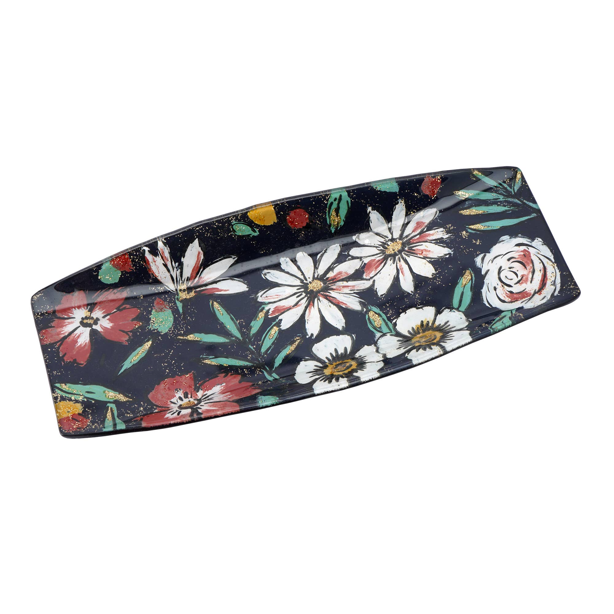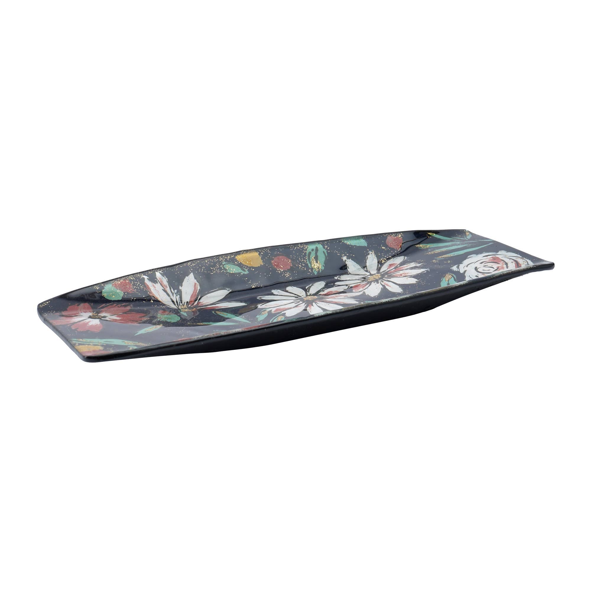 Twilight Bloom Glass Long Rectangular Dish In Gift Box