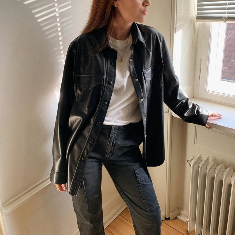 Embody the understated elegance of Nordic design with this Plain Leather Imitation Jacket. Crafted to reflect minimalist sophistication, its clean lines and smooth finish offer durability and a refined look. Perfect for layering, this jacket combines style with practicality, making it a versatile addition to any wardrobe seeking a modern yet timeless appeal.