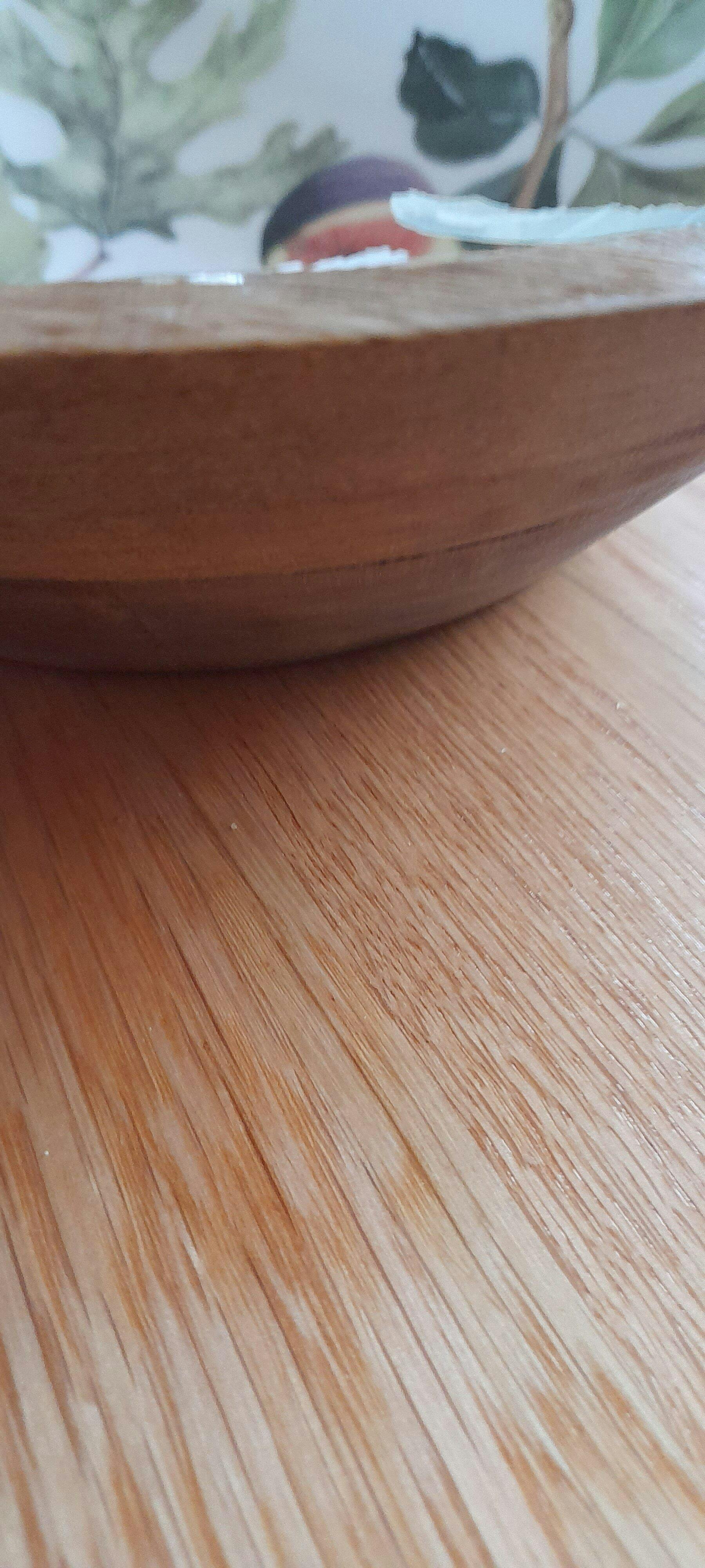 The mango wood bowl features a vibrant fig inlay, with deep purples and greens set against the bowl’s warm, polished surface. This elegant design adds a touch of nature-inspired beauty to a functional piece, perfect for both serving and display.
