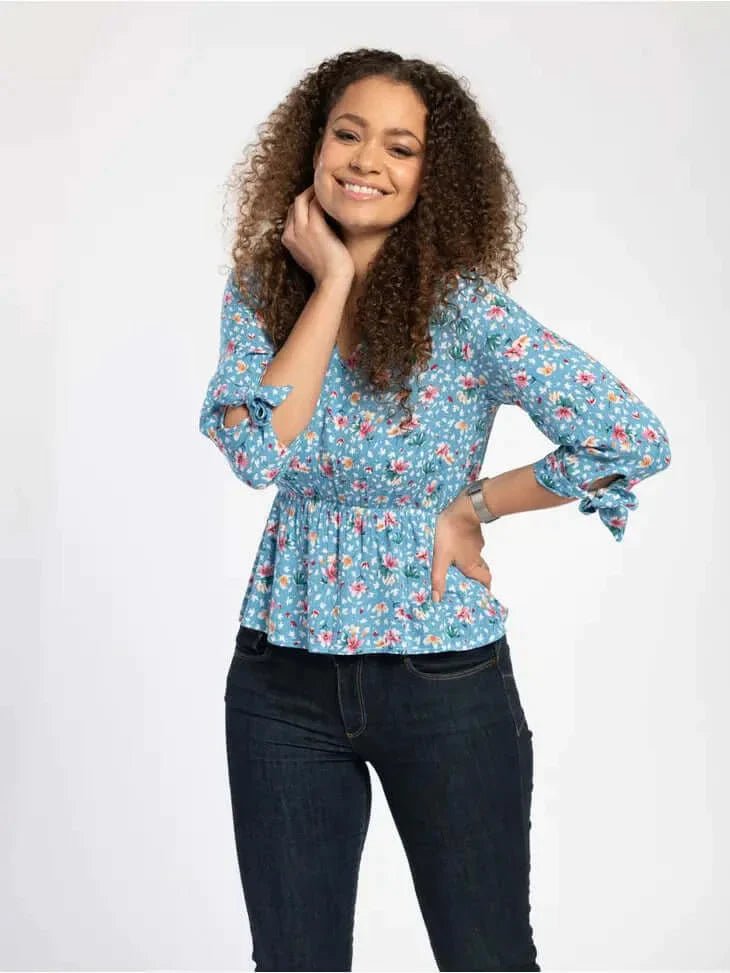 This Peplum Blouse in Blue Flower Print is a timeless wardrobe staple. Its lightweight fabric ensures a comfortable fit, while the peplum design gives it a flattering shape. The blue flower print adds a classic touch perfect for any occasion.