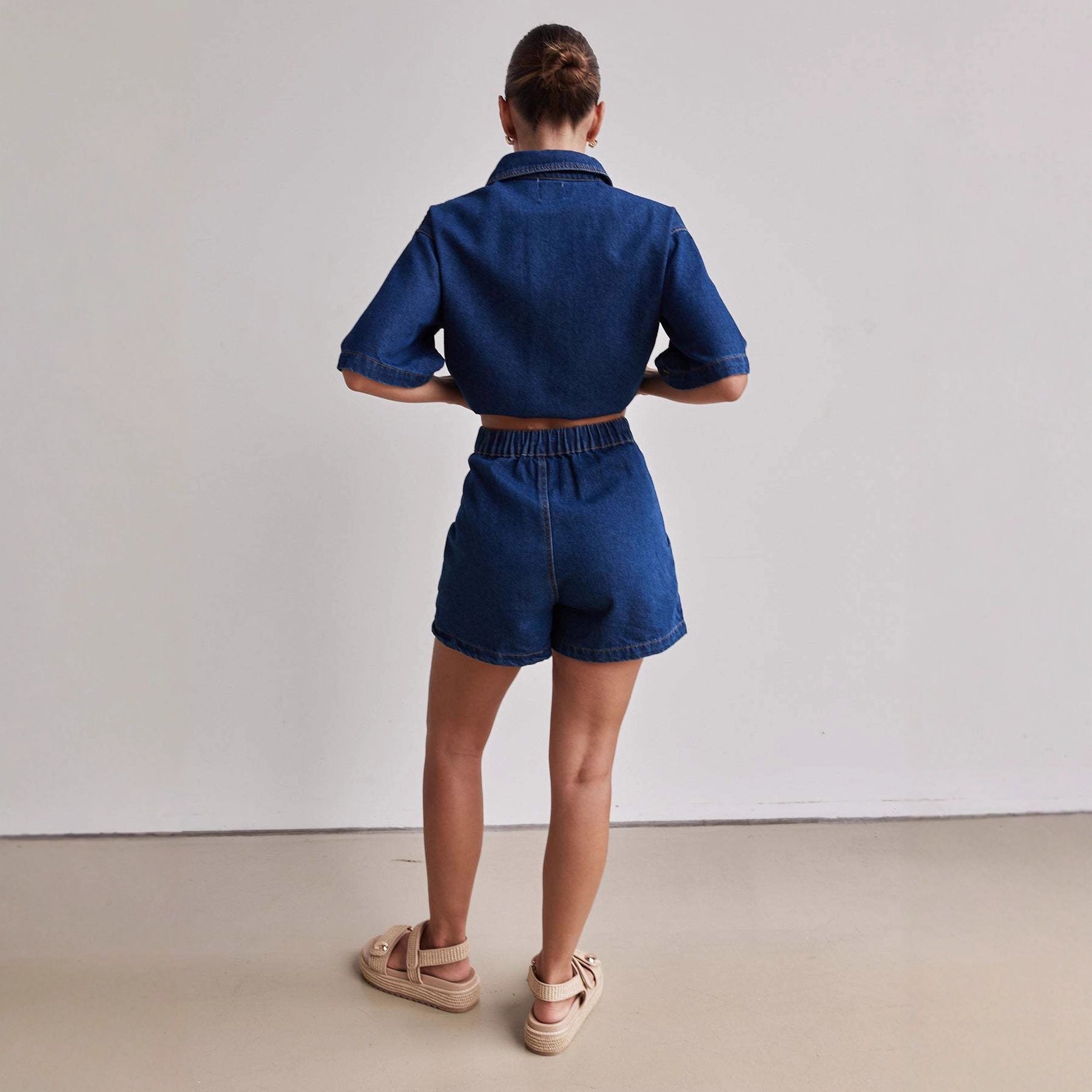 Casual Retro Loose denim Shirt and Shorts Set