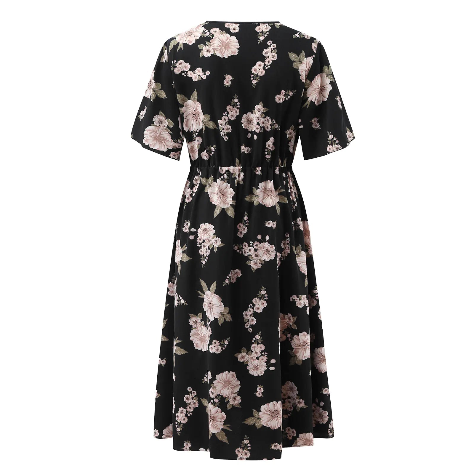 Plus Size Floral Print V-Neck Short Sleeve Midi Dress | Hstrends