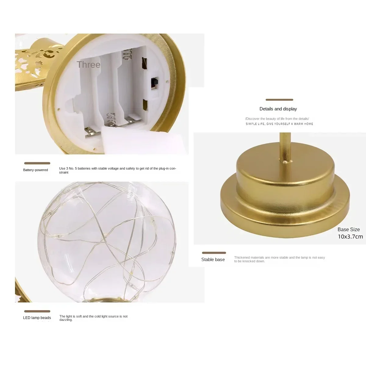 Ramadan Decoration LED Iron Moon Lamp Star Hollow Metal Bedroom Table Lamps Night Light Muslim Crescent