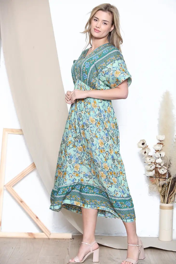 This beautiful floral dress is a must have this season. Made with a relaxed yet flattering fit and short sleeves to keep you comfortable in warmer weather. This dress is perfect for work, holidays or a range of events.