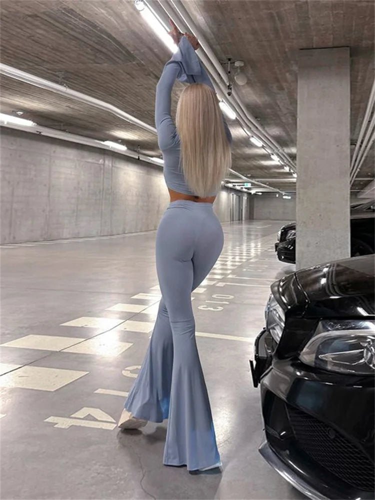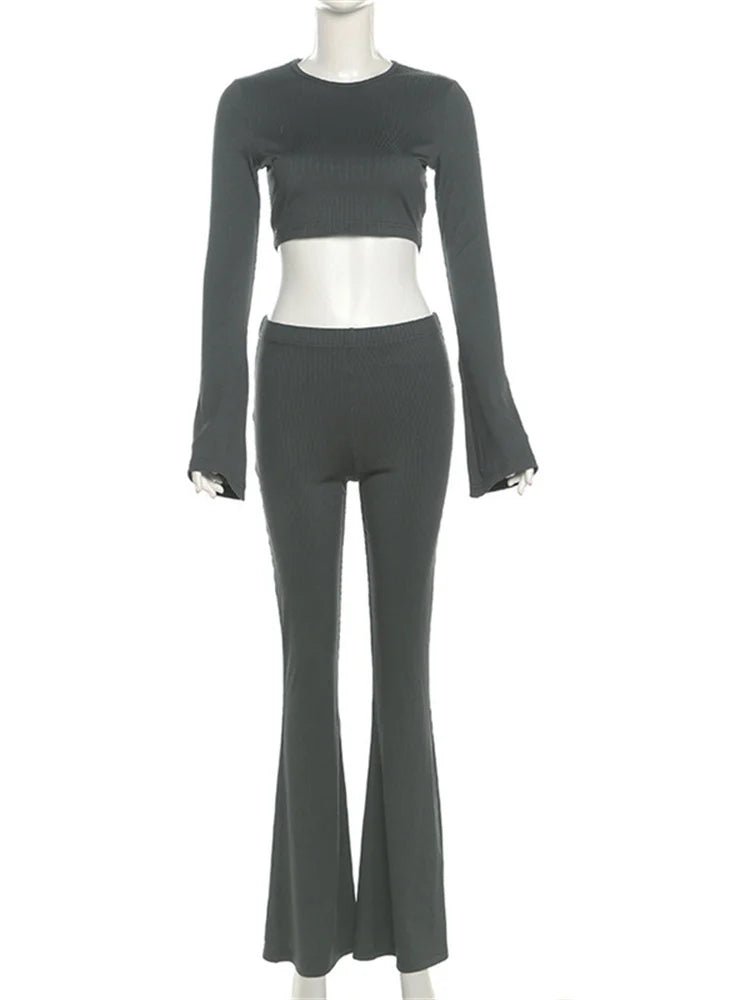 Elevate your streetwear game with the InGrily Sporty 2 Piece Set. This matching crop top and flare legging set offers a comfortable and stylish look, perfect for casual spring days. With its body-shaping design and stretch material, you'll feel confident and fashionable wherever you go. Get ready to turn heads and feel your best in this trendy streetwear set.