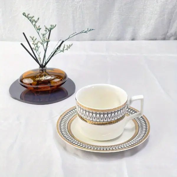 Ceramic Mug and Saucer Set with Golden Edge (1 Set)