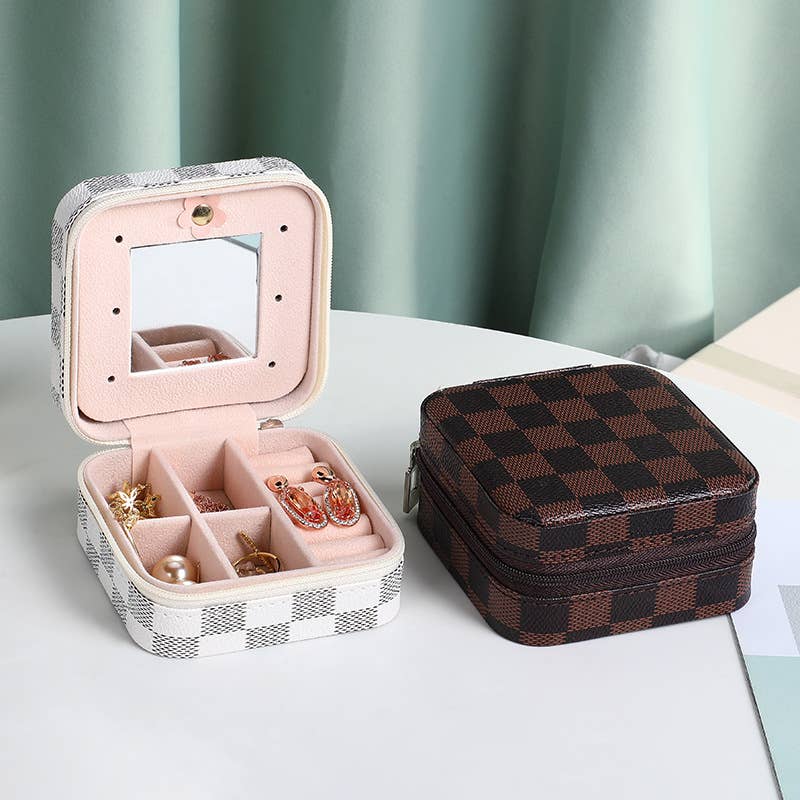 Boîte de rangement à bijoux à imprimé carré : Gris/Blanc