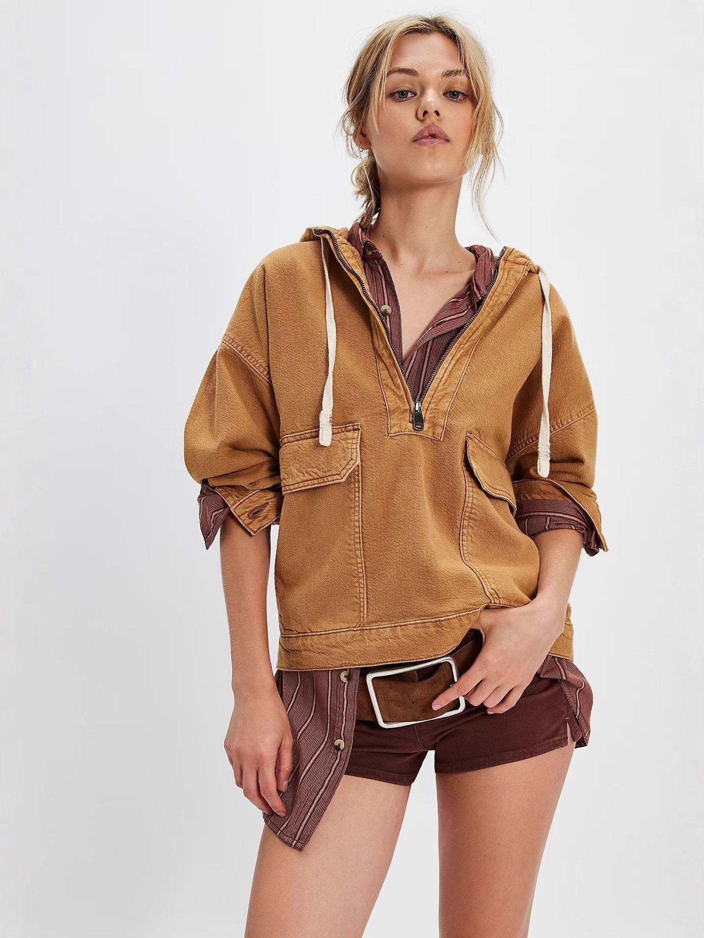 Effortlessly stylish and comfortable, this long sleeve denim jacket combines relaxed fit with modern design. The washed denim fabric gives it a vintage-inspired look, while the integrated hood adds versatility for layering. Perfect for casual outings, weekend wear, or throwing over your favourite tee. The loose silhouette allows for easy movement and pairs well with jeans, joggers, or dresses. A wardrobe essential that transitions seamlessly from season to season.