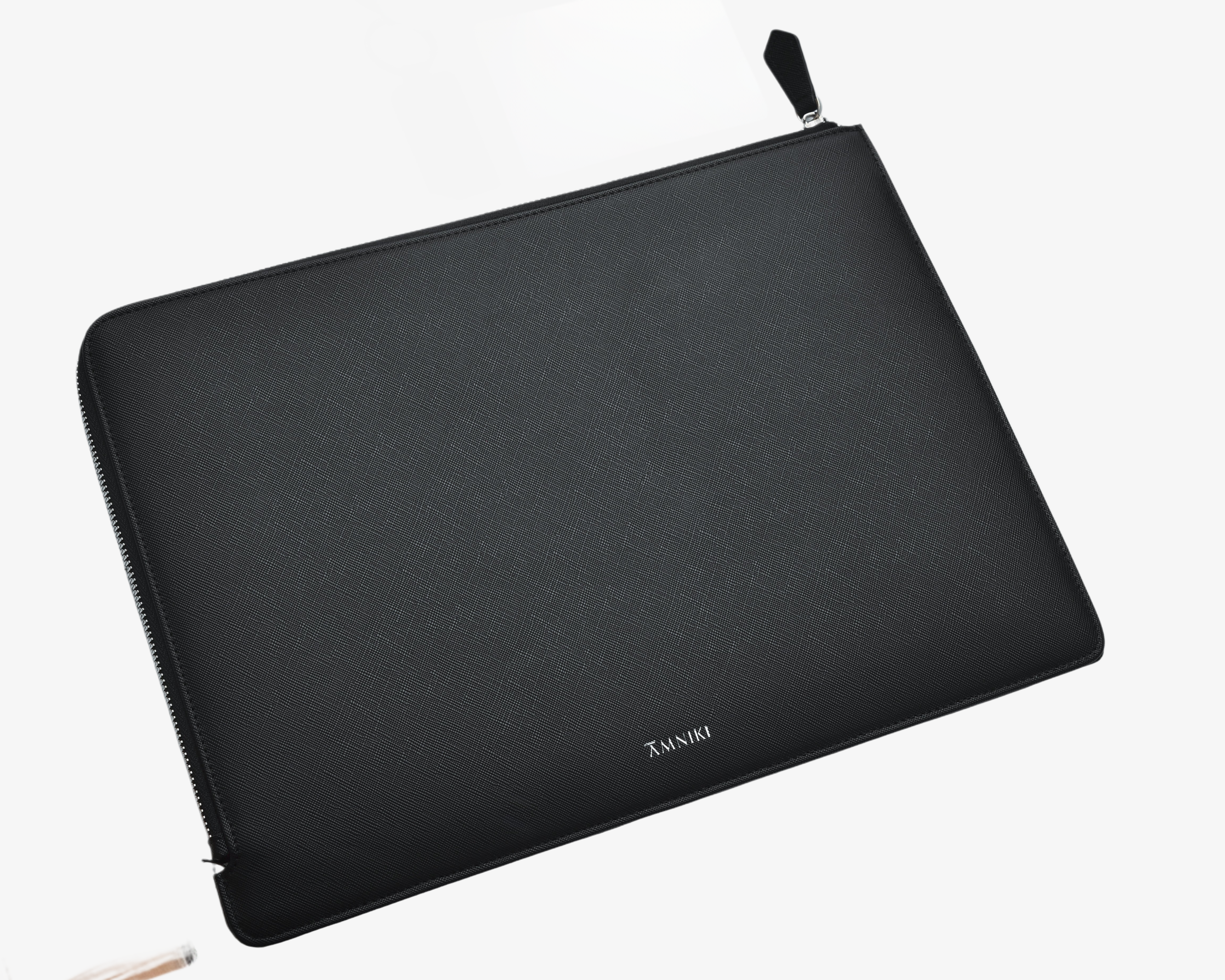 The Phantom Black Saffiano Laptop Sleeve is a must-have for any professional looking to combine style and protection. With its refined and sleek design, this premium sleeve offers a secure fit for your device, making it perfect for on-the-go use.