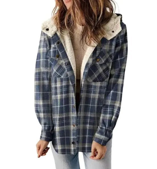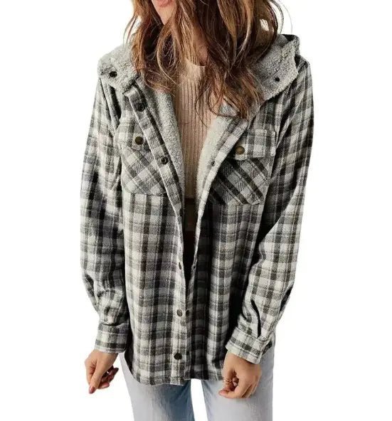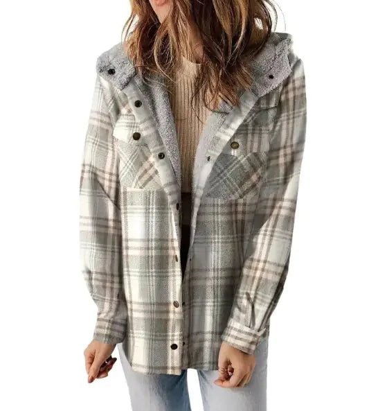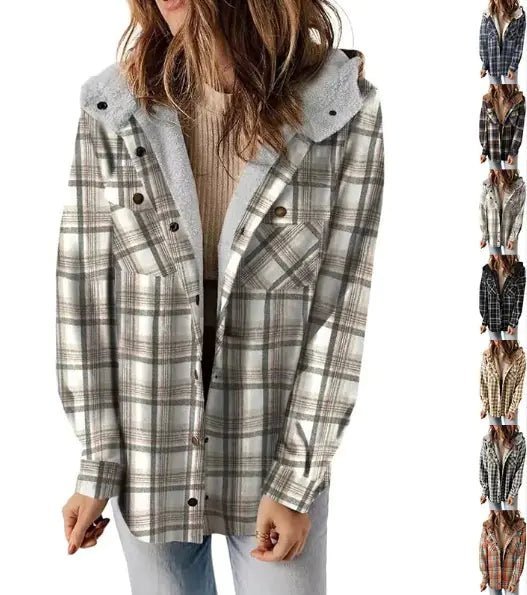 Stay stylish and warm with our Casual Plaid Hooded Woollen Coat. This thickened fleece-lined jacket combines classic plaid patterns with modern comfort, making it the perfect addition to your fall and winter wardrobe.